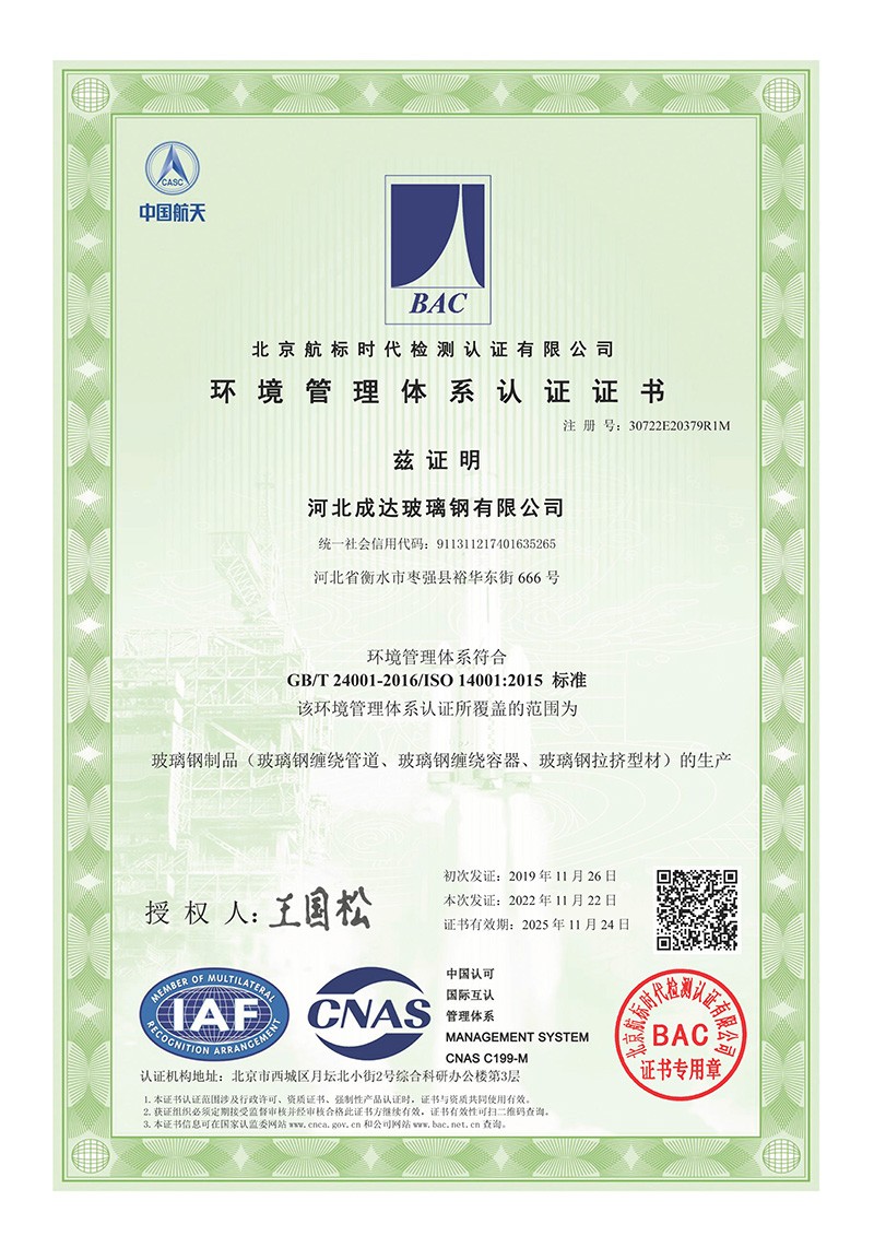 環(huán)境管理體系認(rèn)證證書